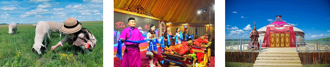 滿洲里出發(fā),讓“草原牧羊娃”們更了解呼倫貝爾史前文明;【猛犸象遺址博物館】是以文化為主題,是集觀光休閑、運(yùn)動(dòng)娛樂(lè)、民俗文化展示、環(huán)境保護(hù)等多功能為一體的旅游景區(qū)。二卡跨國(guó)濕地是蒙古祖先的發(fā)祥地,是抗戰(zhàn)時(shí)期的軍事要塞。是您家庭度假,感受家庭生活的最佳選擇;也是朋友聚會(huì),燒烤休閑的最佳去處;更是情侶拍攝婚紗照的圣地。今天的行程是體驗(yàn)呼倫貝爾大草原的絕佳地帶,此路線是中國(guó)和俄羅斯的邊境邊防公路,沿途也是呼倫貝爾保存最完好的一片草原,天高云淡,綠草無(wú)垠,牛羊滿山坡,牧民在馬背上揮動(dòng)著馬鞭,潔白的氈房里奶茶飄香,一路草原大好風(fēng)光,我們隨時(shí)停車讓大家盡情拍攝羊群、牛群、馬群,體驗(yàn)淳樸的蒙古豪情。我們可以更換民族服裝,更真實(shí)的感受蒙古族生活和生產(chǎn);老師講解擠牛奶的常識(shí)及步驟,并帶領(lǐng)及孩子們可以親身體驗(yàn)下擠牛奶的樂(lè)趣;“草原牧羊娃”可以拿著奶瓶親手喂養(yǎng)小羊,感受與小羊親密接觸的樂(lè)趣,中餐讓家長(zhǎng)和孩子們挑選新鮮的羊肉,并在老師的指導(dǎo)下現(xiàn)場(chǎng)烤全羊、煮手把肉,做好的美食回作為我們今天的餐食,美美的享受一頓自己做的草原風(fēng)味’;寶娃們可以草原拔河、撕名牌、觀日落等活動(dòng),黑山頭騎馬馳騁草原,策馬揚(yáng)鞭,任你撒歡大草原,傍晚觀草原最美日落,參加熱鬧的篝火晚會(huì)載歌載舞,黑山頭堪稱美麗的世外桃源,入住蒙古包,可以觀草原銀河星空,絕對(duì)在呼倫貝爾度過(guò)難忘的一夜!