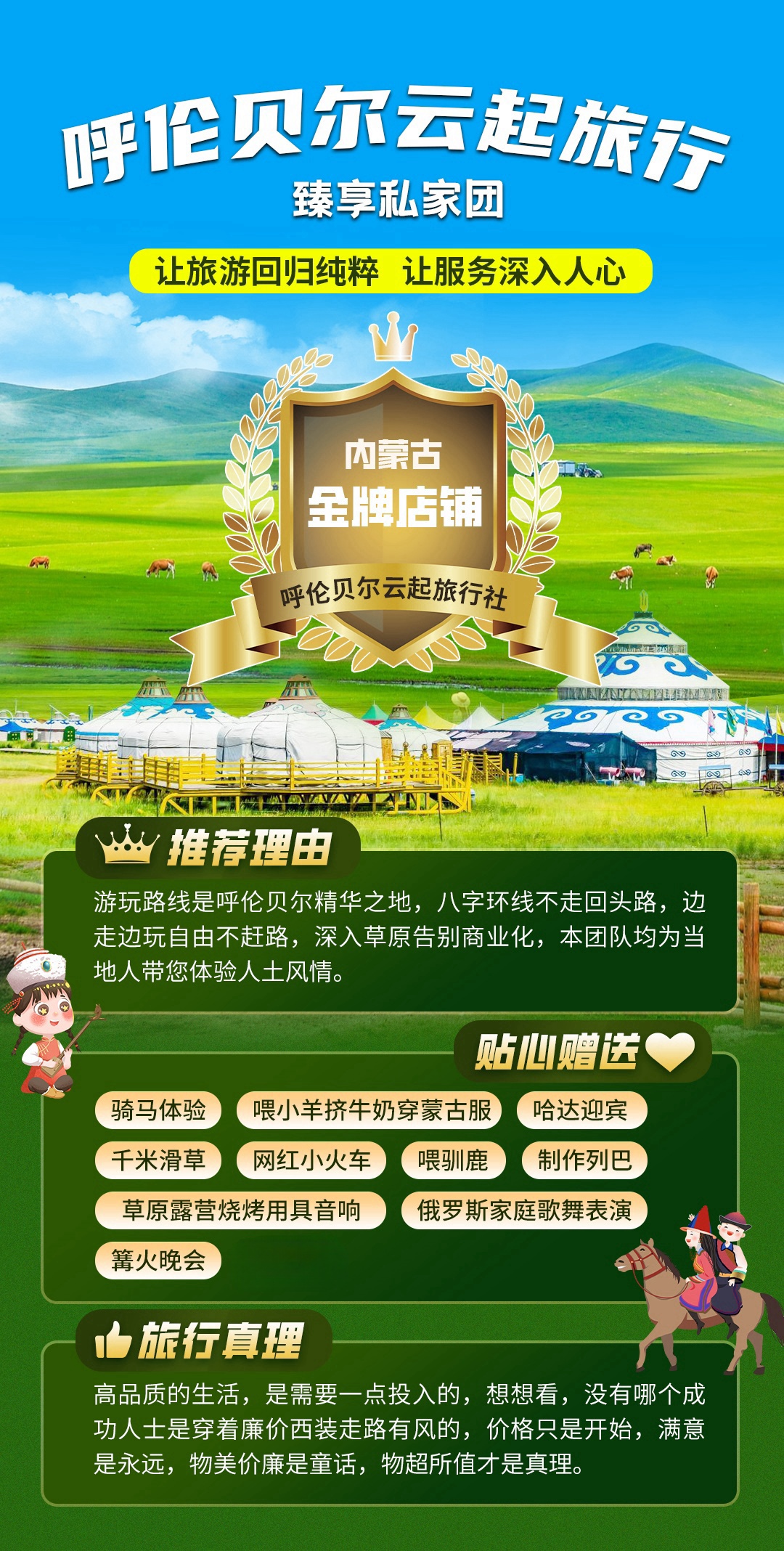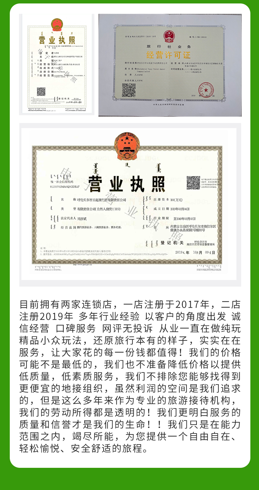 3.接待驢友10000人做到“0”投訴、眾多好評(píng)口碑宣傳,我們專注戶外純玩原生態(tài)體驗(yàn)式旅行、行程為八字環(huán)線不走回頭路避免重復(fù)路程,會(huì)讓您的呼倫貝爾之旅不虛此行