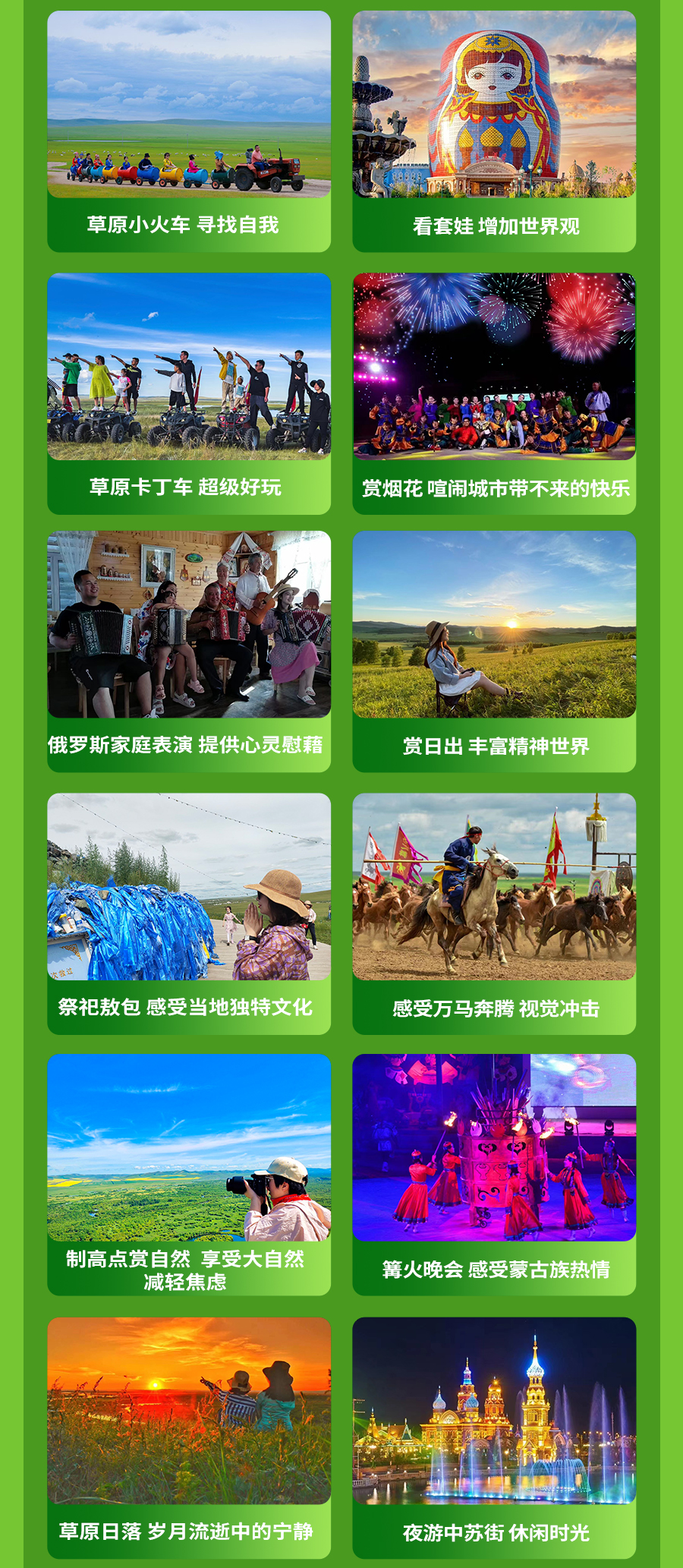 ?后一路草原景色前往海拉爾后自由活動(dòng),視時(shí)間返程,結(jié)束愉快的呼倫貝爾之旅!
