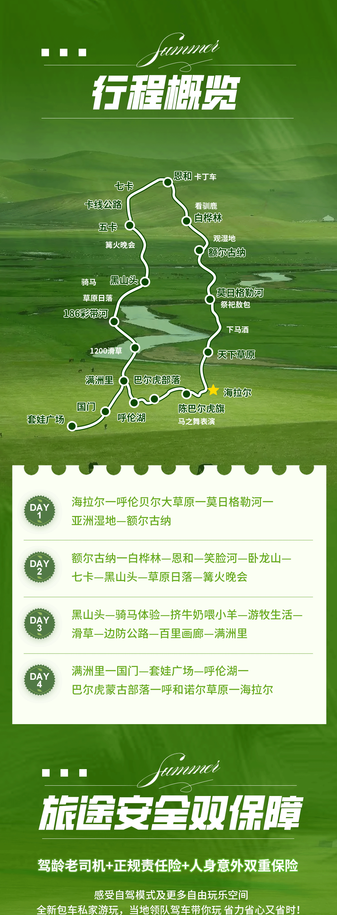 特別注明:本線路為呼倫貝爾云起旅行社獨創(chuàng)路線,本線路為濃縮型,4天路線看的是5天風景,所包含的景區(qū)與游玩的項目同比其他家要多出很多?。。?!